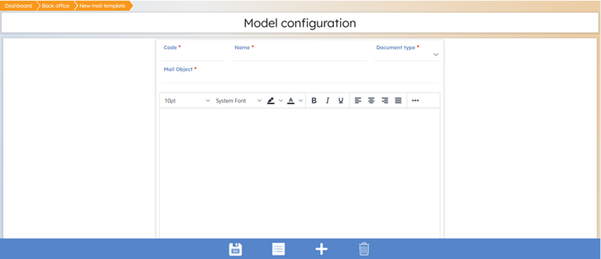 You will be redirected to an e-mail template configuration page. Once finished, click on the Save button.