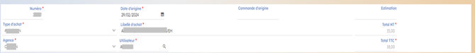 "Libellé d’achat" : Selon le type d’achat sélectionné, un libellé s’inscrit automatiquement. Il est possible de le modifier pour le personnaliser en fonction des besoins.