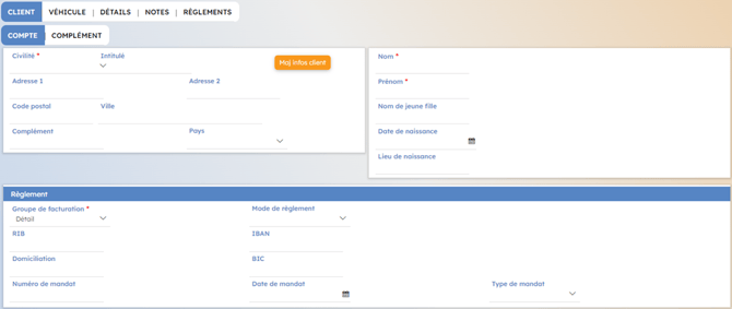 Onglet Client