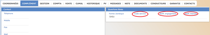 Pour les clients Chorus, il conviendra également de renseigner le Code service, Numéro d'engagement et Numéro de Marché.