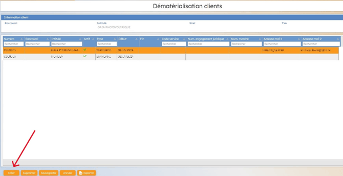 Le menu "Dématérialisation clients" permet de visualiser ou ajouter des clients dont les envois seront par facture électronique.