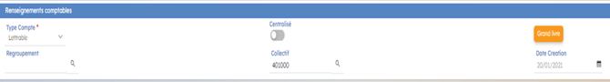 "Collectif" : Indique le compte collectif du fournisseur. (Le compte collectif est préalablement créé dans le plan comptable et son type de compte sera indiqué « Collectif ».)