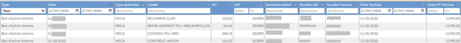 Cet onglet permet de consulter l’historique des achats effectués chez ce fournisseur s’ils ont été saisis dans le logiciel (matériel, prestation, …).