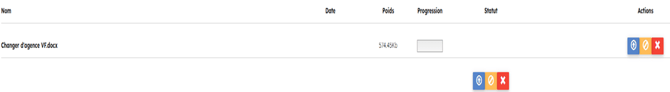 Cliquer sur "Sélectionner fichier" pour récupérer le fichier puis cliquer sur la flèche bleue pour l’enregistrer. Pour consulter un fichier, cliquer sur la flèche verte