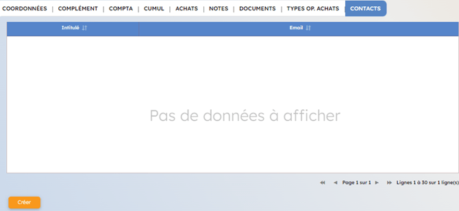 Dans cet onglet, il est possible de consulter, d’ajouter ou de modifier les contacts rattachés à un fournisseur.