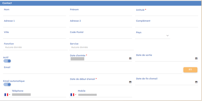 Les contacts peuvent être inclus dans les envois de mails automatiques en activant "Email automatique" .