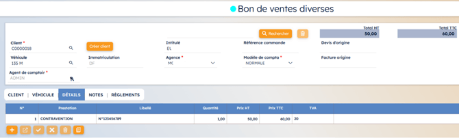 Lors de l’envoi du fichier de déclaration des conducteurs, les PV dont la case « Bon de frais » est cochée génèrent un bon de vente diverse.