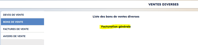 Il est également possible de lancer une facturation « en masse » des bons de ventes générés, par le bouton Facturation générale :