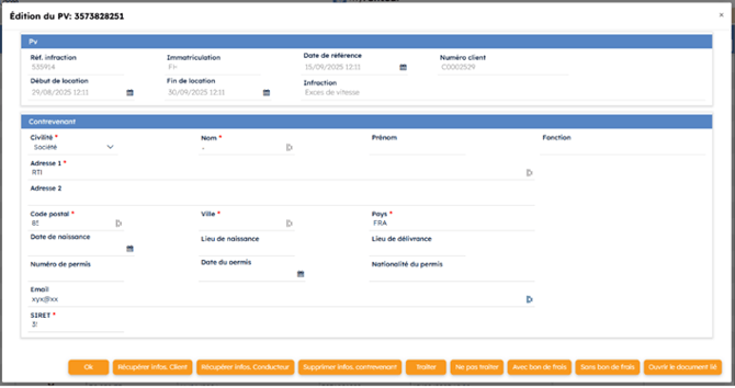 Cas particulier : si une infraction est envoyée à l’ANTAI mais que les informations Contrevenants sont vides, alors l’infraction sera transmise par courrier au loueur.