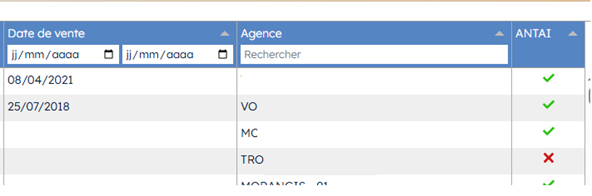La grille de déclaration de parc possède, tout à fait à droite, une colonne « ANTAI ». Celle-ci permet de savoir si un véhicule a été ou non déclaré à l’ANTAI.