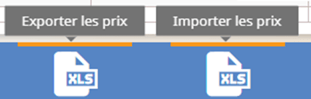 Les boutons d’actions "Exporter les prix" et "Importer les prix" au bas des grilles permettent d’une part l’export de la grille sous Excel, puis le réimport après modification.