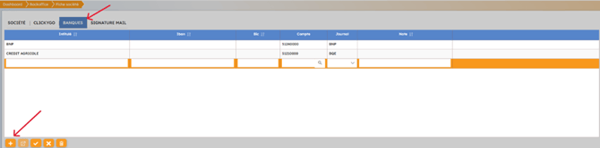 La ou les banques de votre société se créent dans le menu Backoffice > Sociétés > Fiche société.