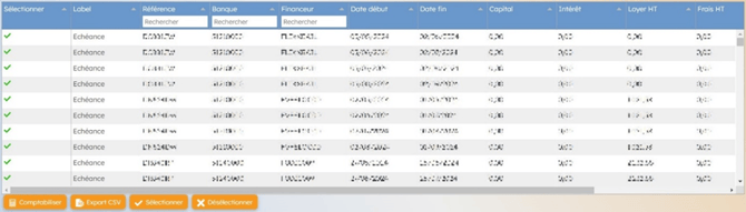 En cliquant sur le bouton "Comptabiliser", les écritures seront générées. Les lignes d’échéances seront alors grisées pour ne pas être proposées de nouveau le mois suivant.
