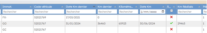 Après avoir cliqué sur « Importer », la grille de saisie des kms compteurs est complétée selon le fichier csv.