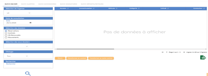 - Le suivi des départs ou des retours véhicules pour une date et/ou une agence donnée.