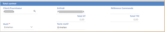 Le second cadre de l’entête, "Total contrat" indique les données liées au tarif et au client si les informations sont indiquées et surtout à la raison du mouvement.