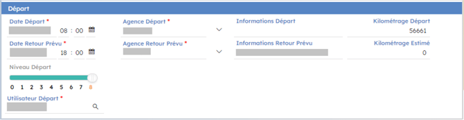"Kilométrage Départ" : Ce champ est automatiquement renseigné lors de la sélection du véhicule.