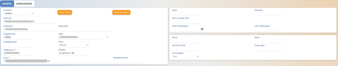 Les informations du premier onglet « Compte » correspondent à l’onglet « Coordonnées » de la fiche client (cf. Documentation Client pour plus de précisions).