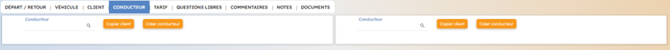 Dans le cas où la fiche client est créée en même temps que le contrat, il est possible de copier les informations du client pour créer et renseigner le conducteur sur ce contrat. Pour cela, cliquer sur le bouton "Copier client".