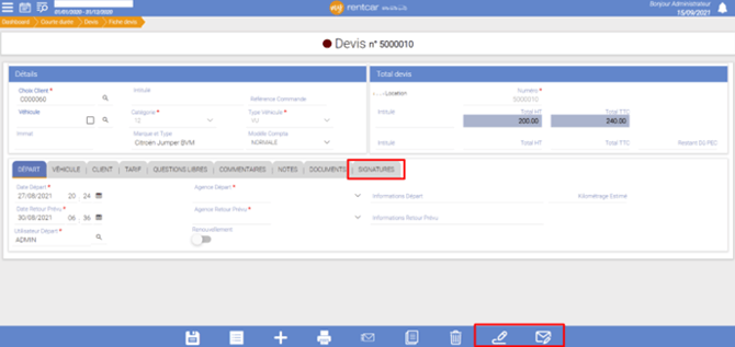 Votre logiciel de location myrentcar propose une signature électronique des documents commerciaux (devis, réservations, …).